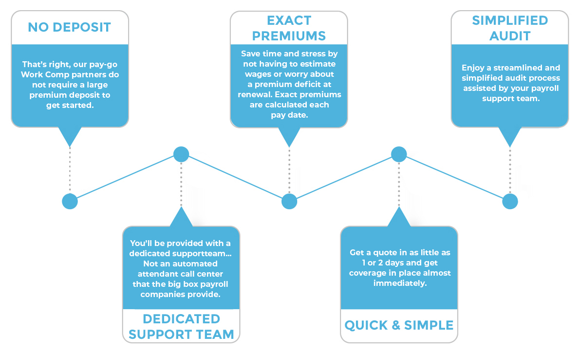 Save time and money while never needing to pay another hefty workers’ compensation deposit again! Our partners shop over 20 carriers to find you the best policy coverage to suit your needs.